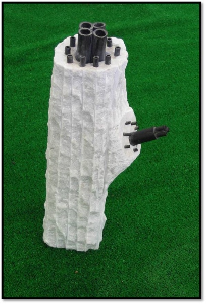 Today, in the age of science fiction and the multitude of movies and digital computer games, an age where the exchange of information has become so quick and new values have invaded our lives – an exhibition dealing with sculpted organic landscapes is unique and special. Classical sculpture, especially in stone, is a massive permanent media and corresponds in this exhibition with new three dimensional artistic schools, which have obtained different meanings and creative paces in the new millennium. Avi Sperber’s exhibition conducts a sharp dialog with the past on the one hand and with the prophetic future on the other hand. The concern about the state of the world in general and specifically nature, led Avi Sperber to create a certain prophetic exhibition that is not devoid of existential anxieties.