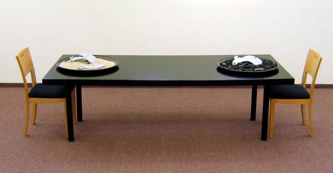 The somewhat absurd confrontation of daily objects and furniture taken from a conventional 21st century apartment with parts of landscapes from real and organic natural environments creates a new and exciting synthesis. “The connection between the totality – man – and his surroundings affect his components and the surroundings. This is how a new organism evolves that is expressed by organic scenes of home, village life, city life, in which each individual becomes a limb (organ) and the surroundings are built up from the organic relations between them” – Avi Sperber at the opening evening of his exhibition.